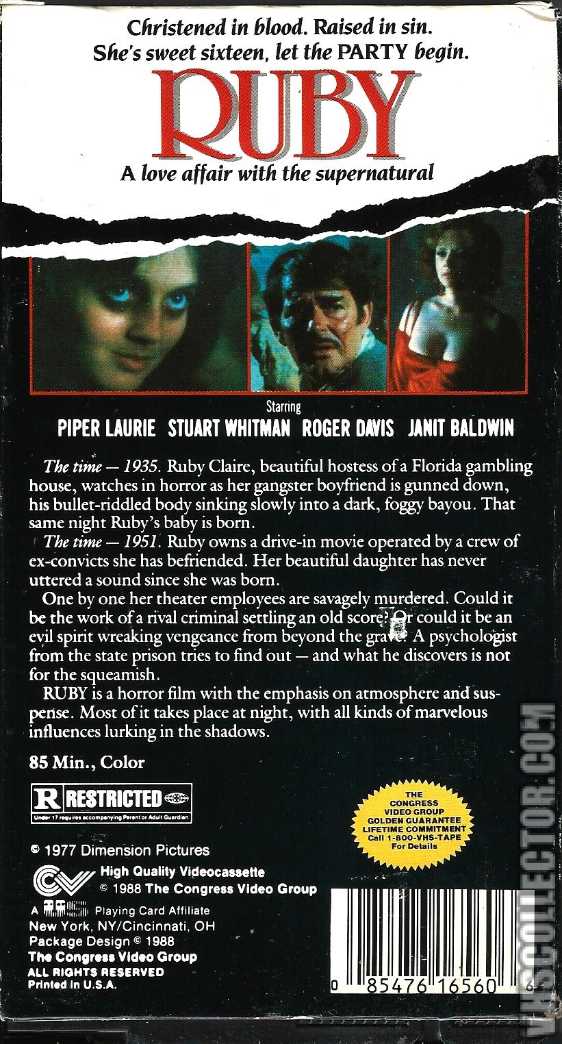 Ruby is a 1977 horror drama film directed by Curtis Harrington,[2] which was one of his last horror films. The film centres around a woman named Ruby Claire (played by Piper Laurie)[3] who is the mother of a deaf-mute girl. She runs a drive-in theatre where bizarre things begin to happen to her employees and the spirit of her dead husband possesses her daughter.
